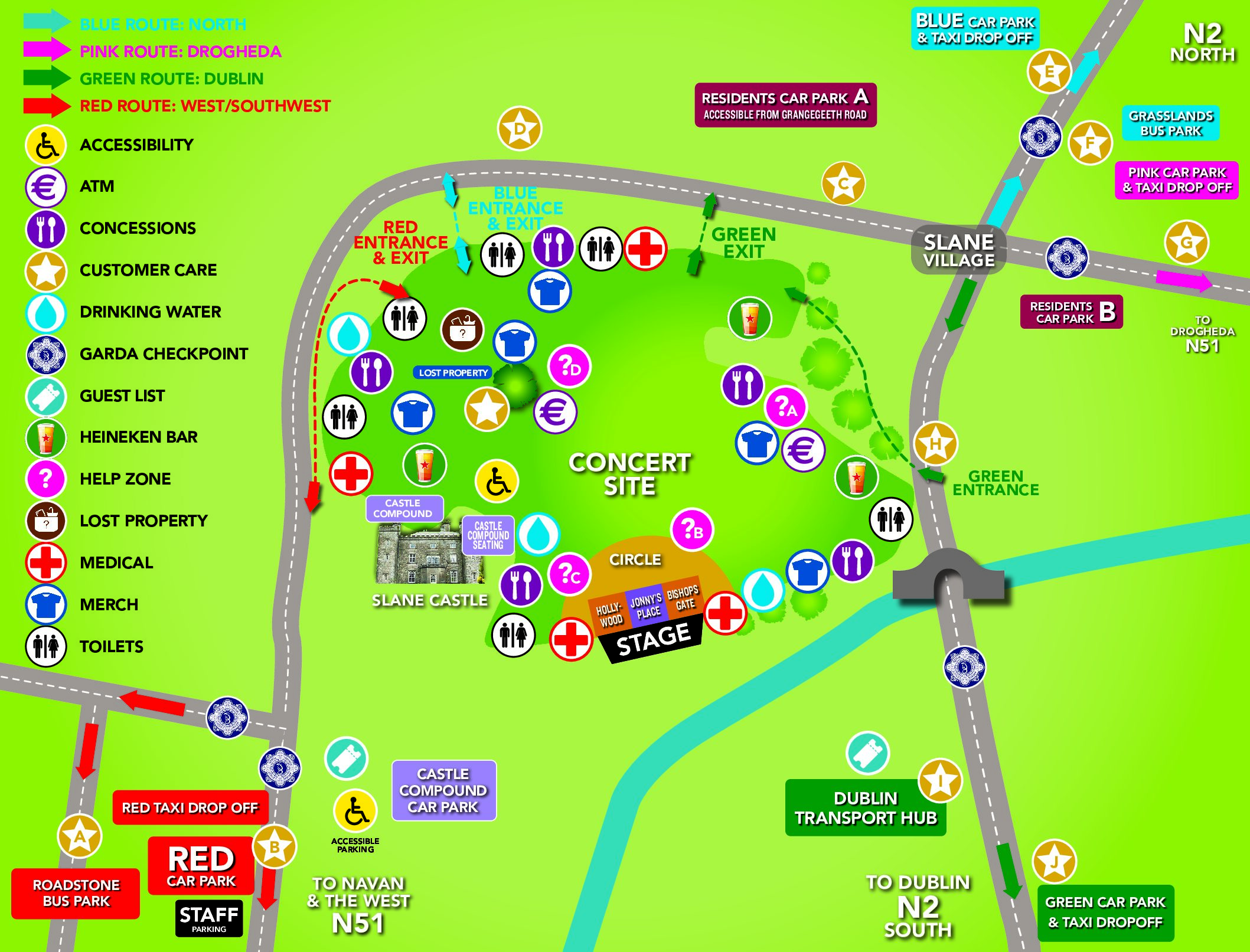 MCD, the concert promoters and organisers of this event, have up-to-date information on traveling to the venue. Buses are available from all over Ireland. If you travel by car to the event, your car parking MUST be booked prior to the event.